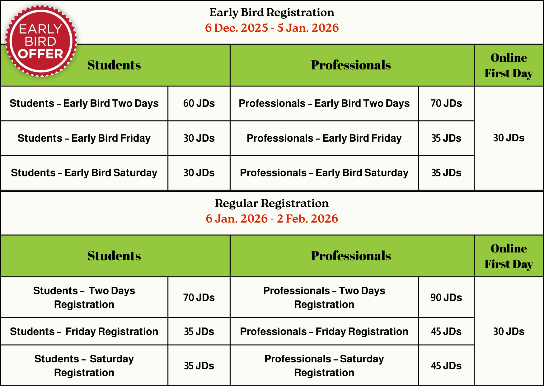 During this period, participants can benefit from discounted fees for both students and professionals.